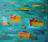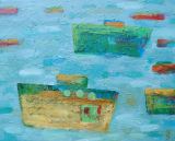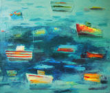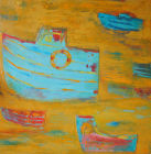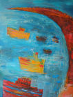 In my search for a new way of building the multi layered painting, the boats are just a starting point.
