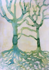 The mystery of the forest, the complicated magical support system between the trees and the connecting roots, stimulate the stories and fairy tales, creating a crowd of images in my head. But just like the forest, I am taking it slowly, allowing the images to emerge out of the chaos of spontaneous mark making.